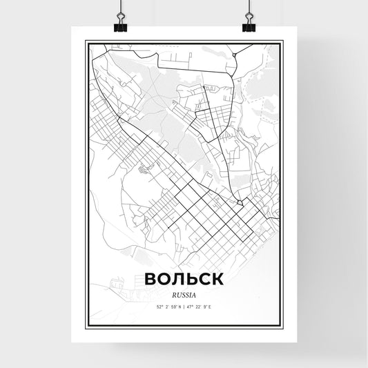 Volsk Russia - Scandinavian Style City Map for Modern Home Decor