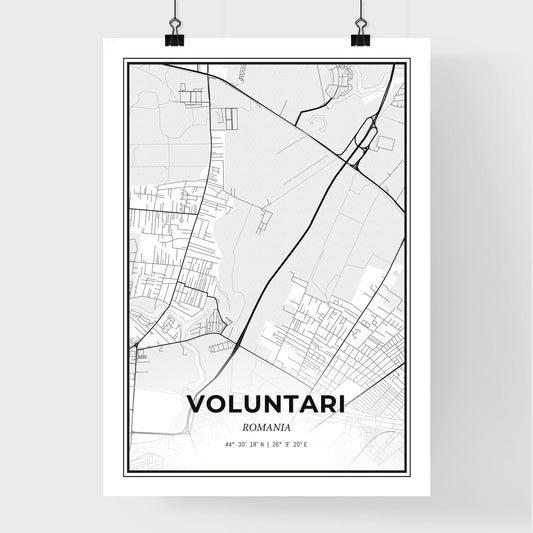 Voluntari Romania - Scandinavian Style City Map for Modern Home Decor