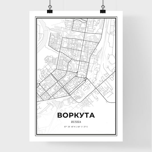 Vorkuta Russia - Scandinavian Style City Map for Modern Home Decor