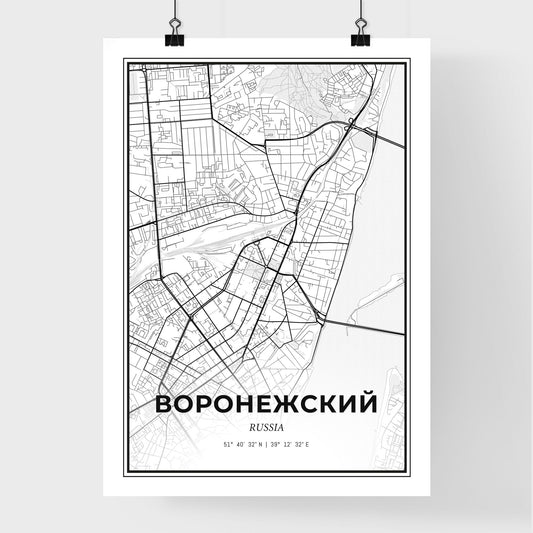 Voronezh Russia - Scandinavian Style City Map for Modern Home Decor