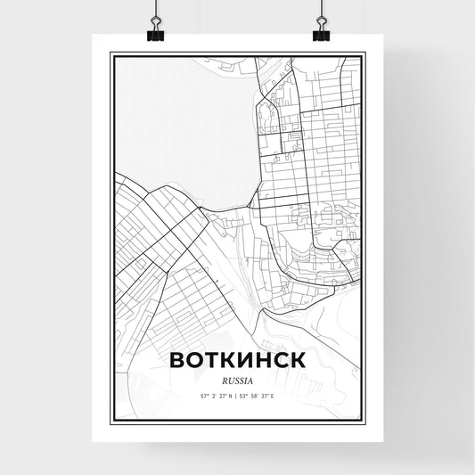 Votkinsk Russia - Scandinavian Style City Map for Modern Home Decor