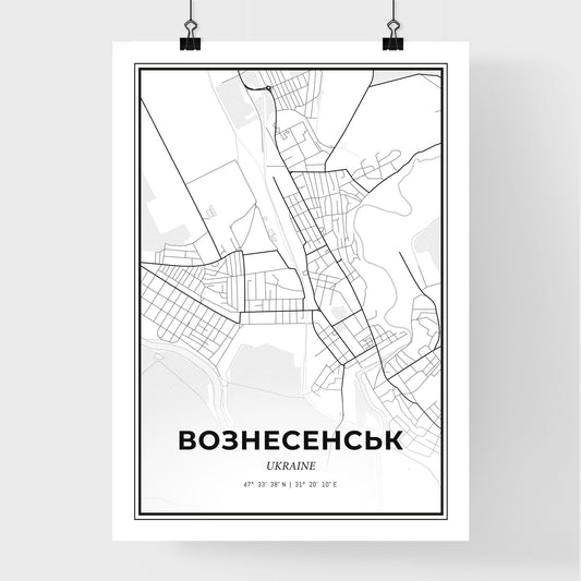 Voznesensk Ukraine - Scandinavian Style City Map for Modern Home Decor