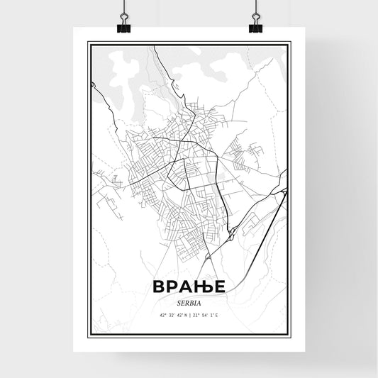 Vranje Serbia - Scandinavian Style City Map for Modern Home Decor