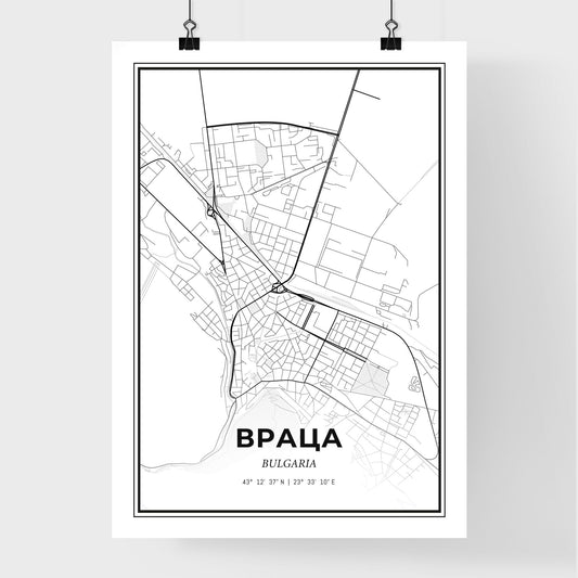 Vratsa Bulgaria - Scandinavian Style City Map for Modern Home Decor