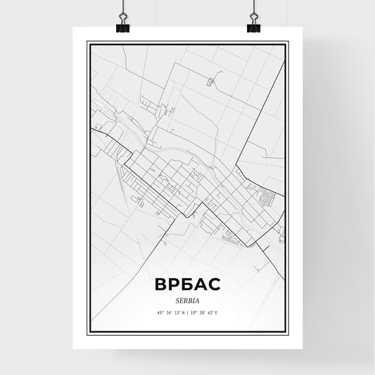 Vrbas Serbia - Scandinavian Style City Map for Modern Home Decor