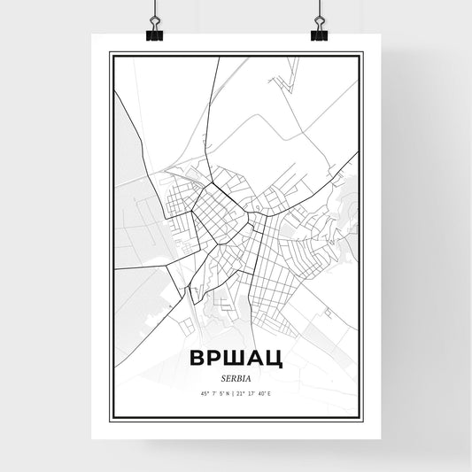 Vršac Serbia - Scandinavian Style City Map for Modern Home Decor