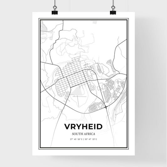 Vryheid South Africa - Scandinavian Style City Map for Modern Home Decor