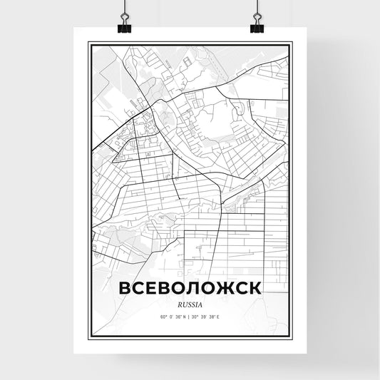 Vsevolozhsk Russia - Scandinavian Style City Map for Modern Home Decor