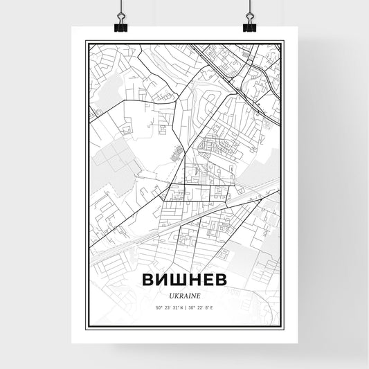 Vyshneve Ukraine - Scandinavian Style City Map for Modern Home Decor