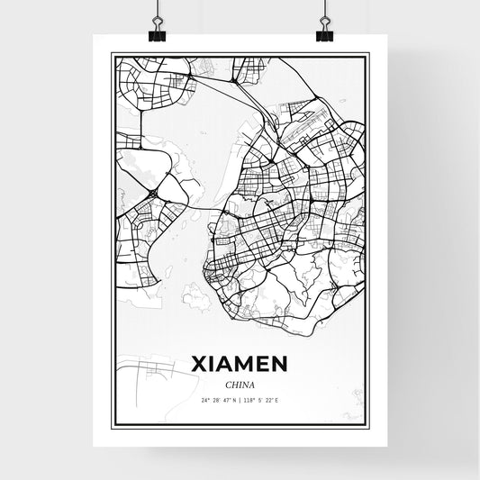 Xiamen China - Scandinavian Style City Map for Modern Home Decor