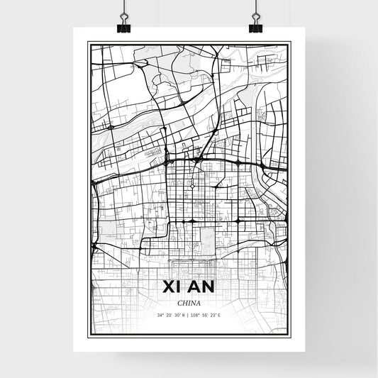 Xi an China - Scandinavian Style City Map for Modern Home Decor