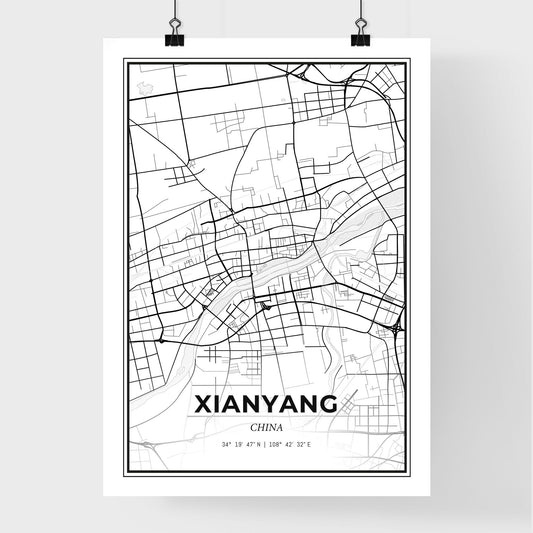 Xianyang China - Scandinavian Style City Map for Modern Home Decor