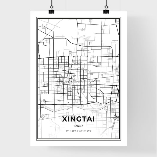 Xingtai China - Scandinavian Style City Map for Modern Home Decor