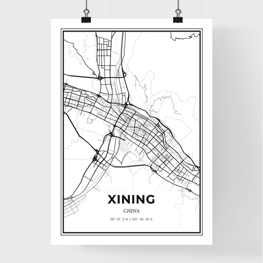 Xining China - Scandinavian Style City Map for Modern Home Decor