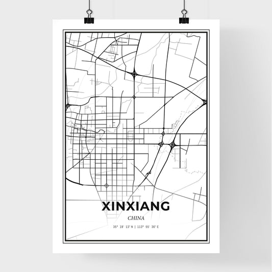 Xinxiang China - Scandinavian Style City Map for Modern Home Decor