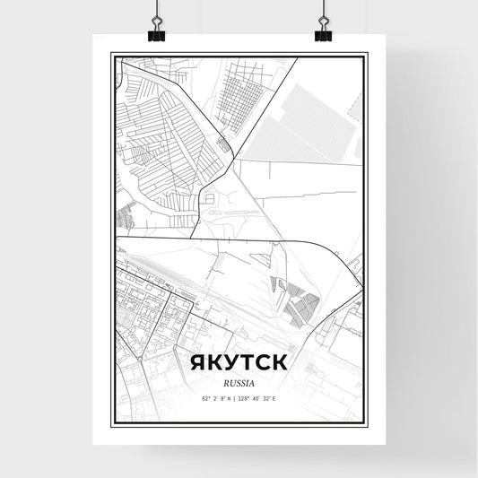 Yakutsk Russia - Scandinavian Style City Map for Modern Home Decor