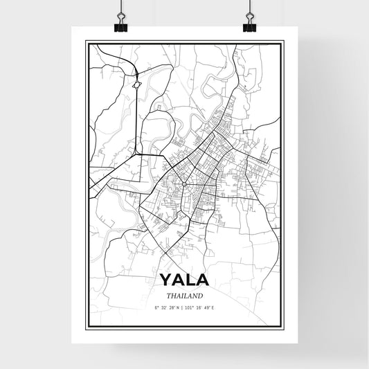 Yala Thailand - Scandinavian Style City Map for Modern Home Decor