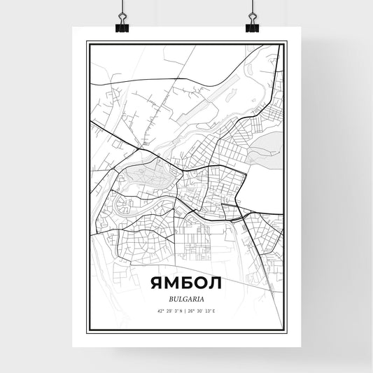 Yambol Bulgaria - Scandinavian Style City Map for Modern Home Decor