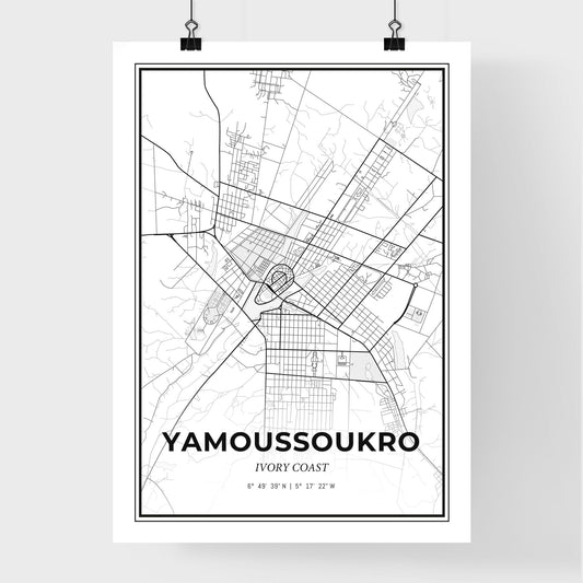 Yamoussoukro Ivory Coast - Scandinavian Style City Map for Modern Home Decor