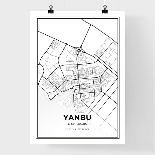 Yanbu Saudi Arabia - Scandinavian Style City Map for Modern Home Decor