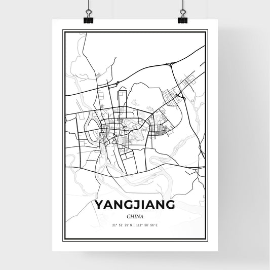 Yangjiang China - Scandinavian Style City Map for Modern Home Decor