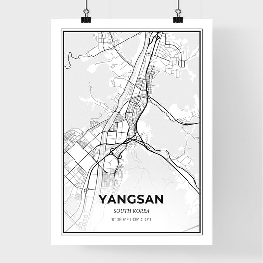 Yangsan South Korea - Scandinavian Style City Map for Modern Home Decor