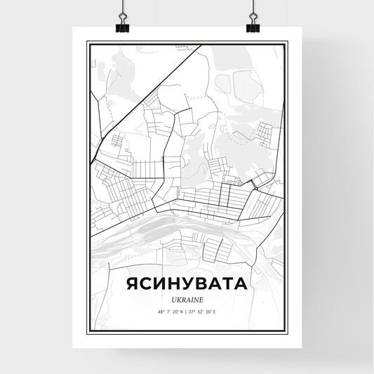 Yasynuvata Ukraine - Scandinavian Style City Map for Modern Home Decor