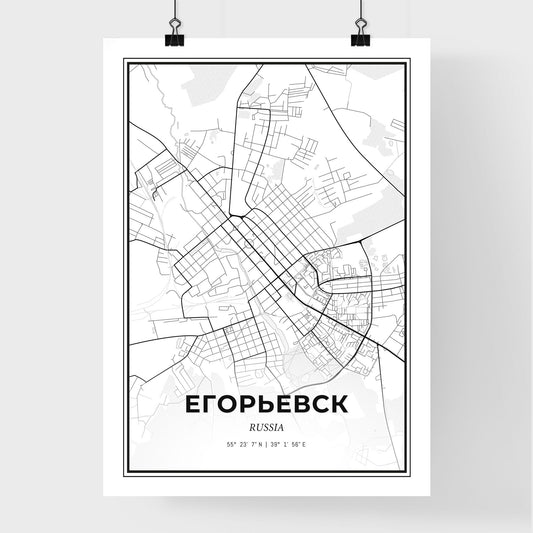 Yegoryevsk Russia - Scandinavian Style City Map for Modern Home Decor