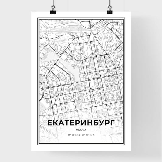 Yekaterinburg Russia - Scandinavian Style City Map for Modern Home Decor
