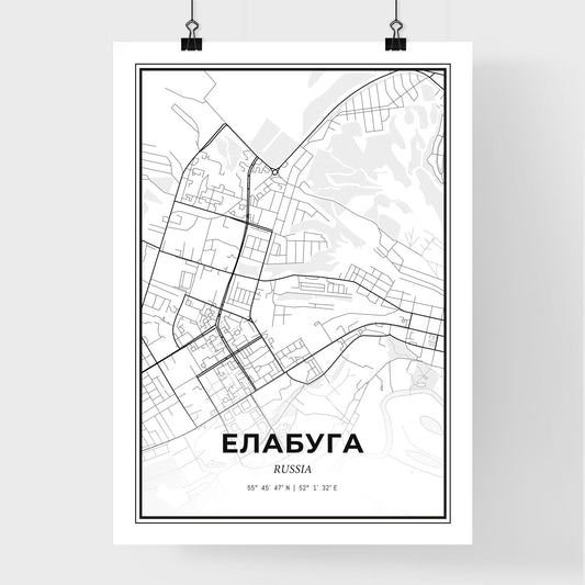 Yelabuga Russia - Scandinavian Style City Map for Modern Home Decor