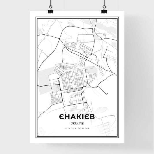 Yenakiieve Ukraine - Scandinavian Style City Map for Modern Home Decor