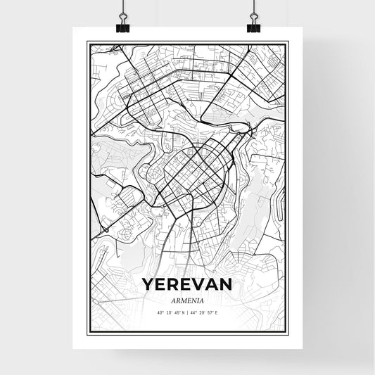 Yerevan Armenia - Scandinavian Style City Map for Modern Home Decor