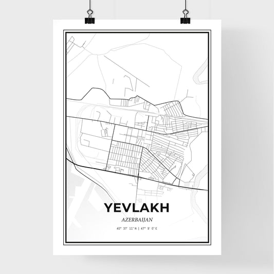 Yevlakh Azerbaijan - Scandinavian Style City Map for Modern Home Decor