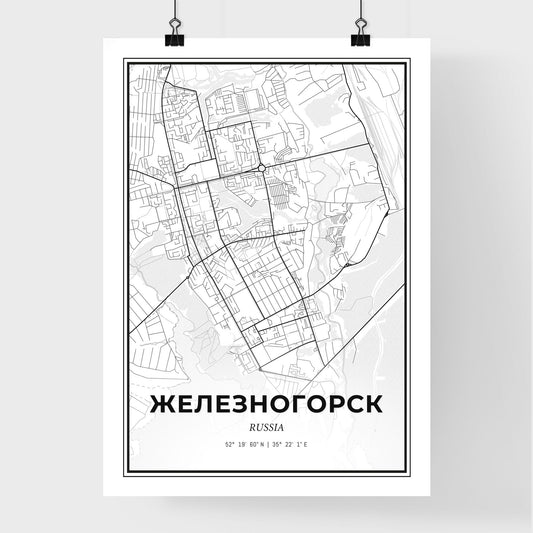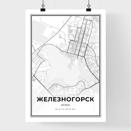 Zheleznogorsk Russia - Scandinavian Style City Map for Modern Home Decor