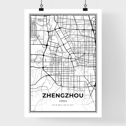 Zhengzhou China - Scandinavian Style City Map for Modern Home Decor