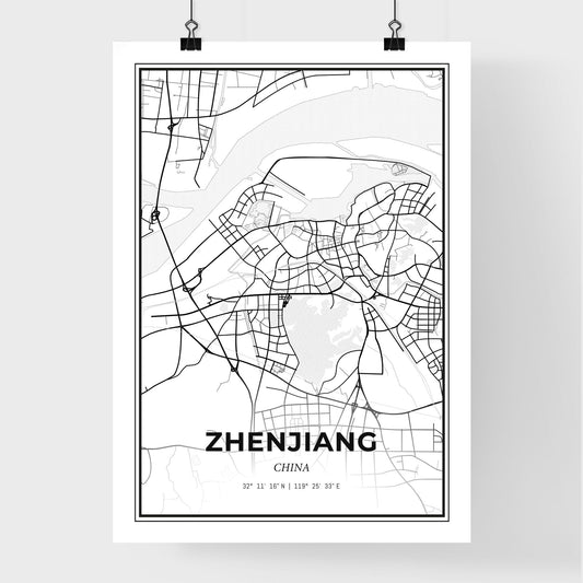 Zhenjiang China - Scandinavian Style City Map for Modern Home Decor