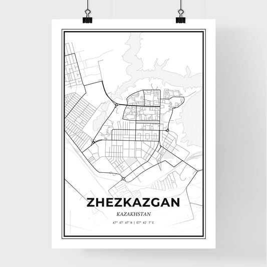 Zhezkazgan Kazakhstan - Scandinavian Style City Map for Modern Home Decor