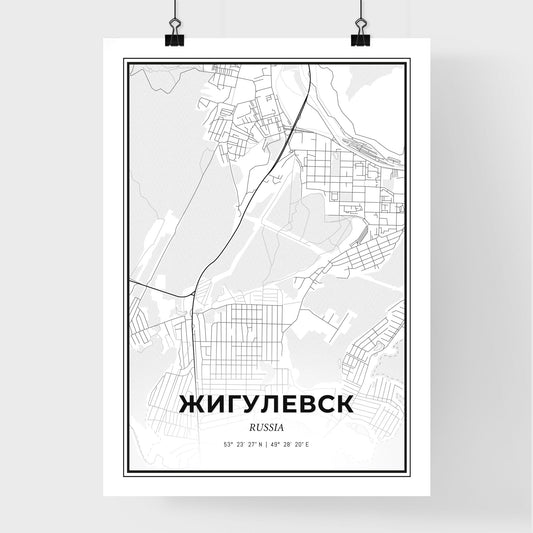 Zhigulyovsk Russia - Scandinavian Style City Map for Modern Home Decor