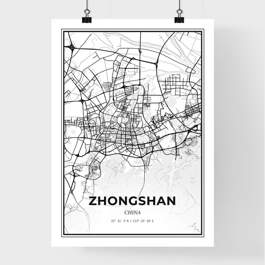 Zhongshan China - Scandinavian Style City Map for Modern Home Decor