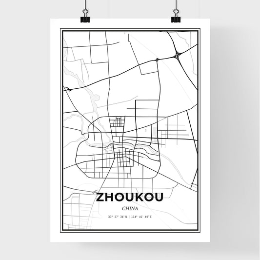 Zhoukou China - Scandinavian Style City Map for Modern Home Decor