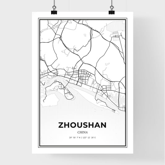 Zhoushan China - Scandinavian Style City Map for Modern Home Decor