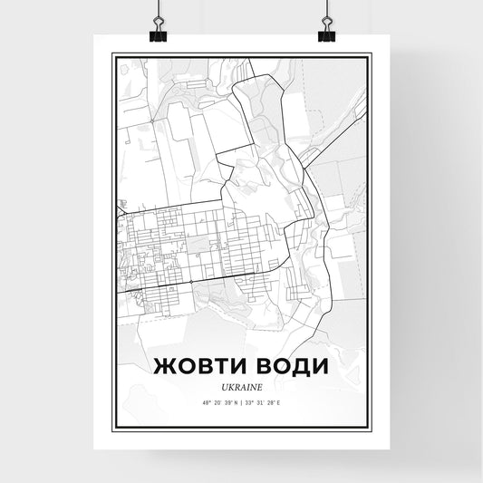 Zhovti Vody Ukraine - Scandinavian Style City Map for Modern Home Decor