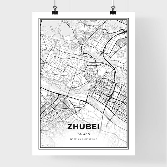 Zhubei Taiwan - Scandinavian Style City Map for Modern Home Decor