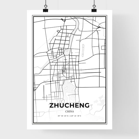 Zhucheng China - Scandinavian Style City Map for Modern Home Decor