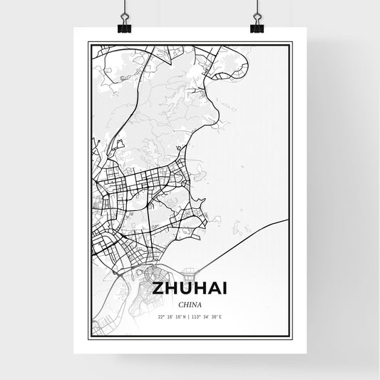 Zhuhai China - Scandinavian Style City Map for Modern Home Decor