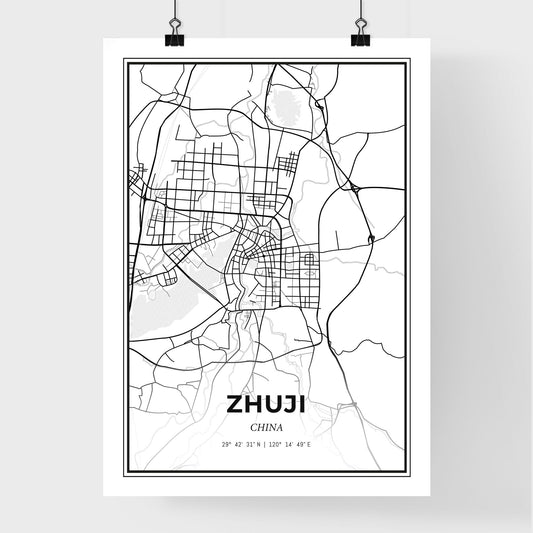 Zhuji China - Scandinavian Style City Map for Modern Home Decor