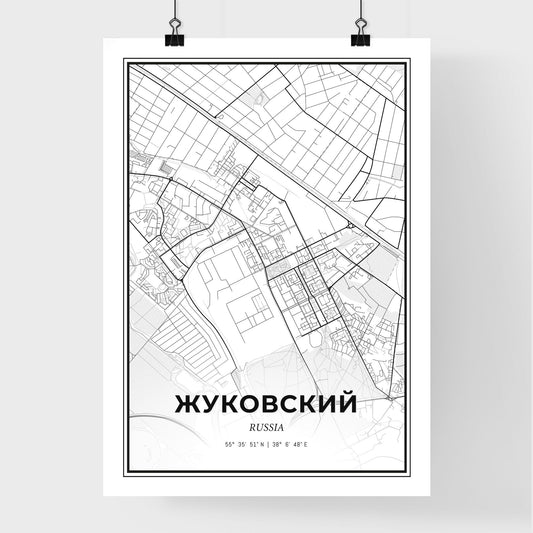 Zhukovsky Russia - Scandinavian Style City Map for Modern Home Decor