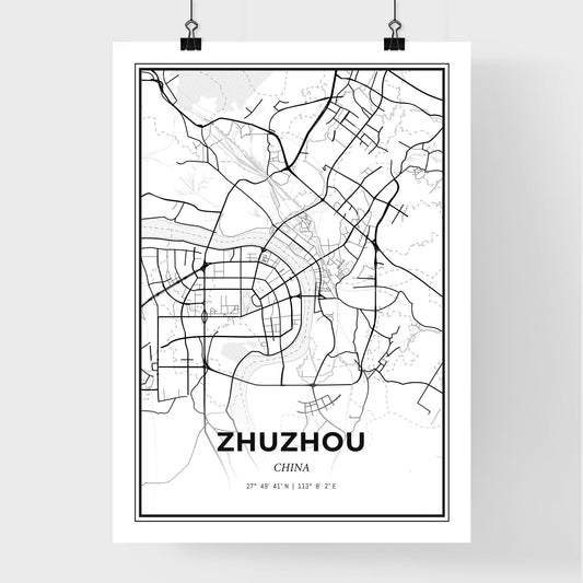 Zhuzhou China - Scandinavian Style City Map for Modern Home Decor