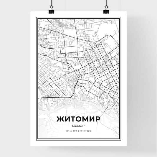 Zhytomyr Ukraine - Scandinavian Style City Map for Modern Home Decor