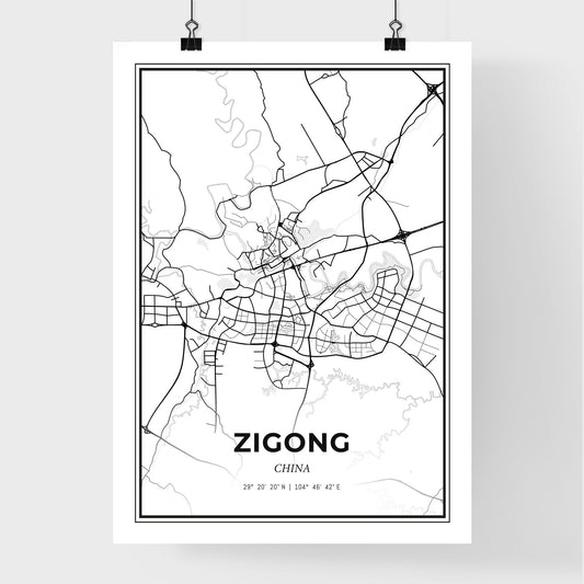 Zigong China - Scandinavian Style City Map for Modern Home Decor